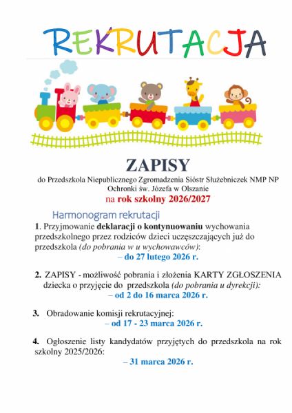 Zaczynamy rekrutację do naszego przedszkola na nowy rok 2026/2027.